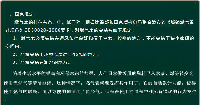 北京燃气拆改迁电话强调,北京燃气改燃气表移动燃气表位置必须安装在通风条件良好便于检查维修的位置,不要把燃气表安装到特别狭小的空间,这样会给以后的燃气检查维修带来很大的弊端。
