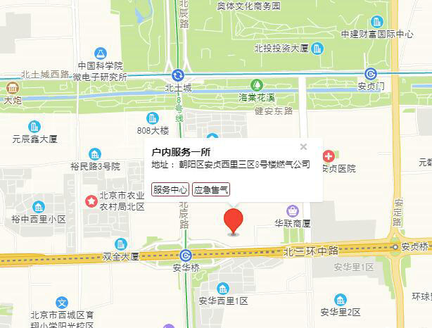 网点地址:朝阳区安贞西里三区8号楼燃气公司