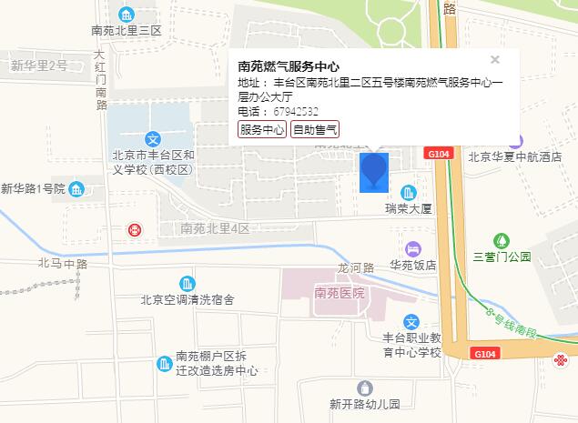 网点地址:丰台区南苑北里二区五号楼南苑燃气服务中心一层办公大厅