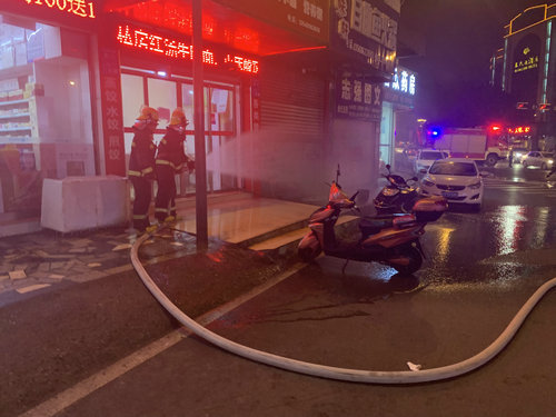消防人员和燃气公司人员几乎同时到达现场,消防战士迅速控制住火情。同时燃气公司抢修人员经过排查发现燃气泄漏点是在这家饭店的厨房,由于工人施工不慎将天燃气管道打破,并且燃气正好被电器碳刷火花点燃,工人直接就跑了,别的人看到着火,不了解情况。