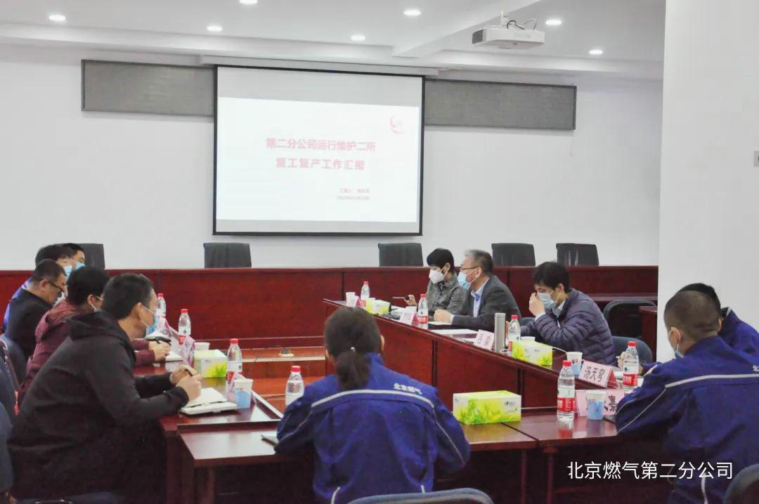 北京燃气集团公司专项检查组到二分公司检查指导复工复产工作,4月9日上午,北京燃气集团公司副总经理曹育军,办公室副主任吕淼、生产运营部副经理王嵩梅,销售服务部汤天穹一行人分别到北京燃气第二分公司户内服务二所、北京燃气第二分公司运行维护二所检查指导复工复产工作。分公司党委书记、总经理荆杰华,总经理助理田晓江、总经理助理李伟,销售服务部经理田伟、生产运营部经理贾文禄,所部领导班子及相关工作人员参加。