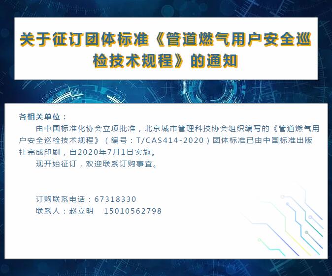 关于征订团体标准《管道燃气用户安全巡检技术规程》的通知